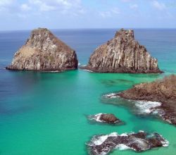 Архипелаг Фернанду ди Норонья представляет собой изолированную группу из 21 острова вулканического происхождения, расположенную в экваториальной части южной Атлантики в 545 км от Ресифи. Административно острова относятся к бразильскому штату Пернамбуку. Архипелаг состоит из одноименного главного острова Фернанду ди Норонья и нескольких островов меньшего размера, в том числе живописных островков-спутников Леао («Львиный») и Дойс-Ирманс («Два брата»). Архипелаг был открыт в 1502 году португальцем Фернанду ди Норонья и через пару лет был подарен королем Португалии Мануэлем I своему первооткрывателю. Впоследствии островами поочередно владели англичане, французы и голландцы, пока в 1736 году они вновь не вернулись во владения португальской короны. Главный город архипелага также называется Фернанду ди Норонья. Здесь есть аэропорт, куда прибывают рейсы из Ресифи и Натала, и неплохо сохранившийся исторический центр с дворцом, церковью, старинными зданиями и тюрьмами, куда правительство Бразилии когда-то ссылало политических заключенных. Благодаря исключительно богатому подводному миру (это лучшее в Бразилии место для дайвинга), острова Фернанду ди Норонья были включены в Список Всемирного Наследия Юнеско. В настоящее время 70% территории архипелага отданы Национальному Морскому Парку. Из-за близости к экватору на островах четко выражены два сезона – сезон дождей с января по август и сухой сезон в оставшиеся месяцы. Наилучшие условия для занятия дайвингом складываются с августа по ноябрь. С декабря по март море дает сильную волну, поэтому в это время на острова съезжаются серферы. На острове Фернанду ди Норонья есть несколько гостиниц, предлагающих услуги по размещению экотуристов. Планируя путешествие, следует помнить о существующем ограничении числа посетителей острова (не больше 500 человек в день) и необходимости оплатить сбор за пребывания на острове. Это можно сделать заранее на официальном сайте острова или отстояв очередь по прибытии. Среди прочих существующих ограничений отметим следующие: нельзя дотрагиваться до кораллов и рыб; нельзя посещать пляжи Саншу, Леау и Болдру с января по июнь с 18:00 до 06:00 (в это время на них откладывают яйца морские черепахи); нельзя использовать солнцезащитные средства и ласты на пляже Аталайя. Все эти ограничения призваны защитить хрупкую экосистему архипелага от чрезмерного человеческого вмешательства. Побережье острова Фернанду ди Норонья делится на две части – расположенное на западе Внутреннее море и Внешнее море с противоположной стороны. Лучшими местами для подводного плавания считаются залив Байя ду Саншу и естественные отливные бассейны на пляжах Аталайя и Байя дус Поркус. Самым большим пляжем является пляж Леао с красноватым песком, расположенный в юго-восточной части острова в районе Внешнего моря. Напротив пляжа Леао расположен небольшой островок, очертаниями напоминающий льва. А самые лучшие условия для серфинга наблюдаются на пляжах Мейо и Боде, где в течение всего года можно поймать волну. Подобно другим островным экосистемам, на архипелаге Фернанду ди Норонья наблюдается большое разнообразие птиц, многочисленные гнезда которых можно увидеть повсюду. На островах встречаются два вида морских черепах, откладывающие яйца на песчаных пляжах, и два вида ящериц. Но наи