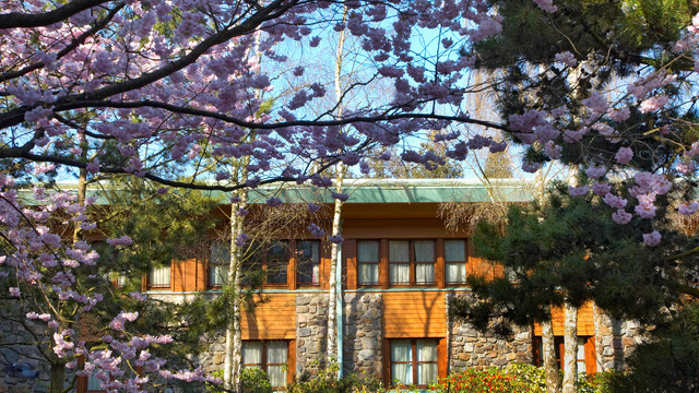 Отель оформлен в стиле курорта в горах, отделанных деревом североамериканских охотничьих шале. Вокруг отеля множество больших вечнозеленых секвой, поэтому он получил такое название. До парков Диснейленда 10-15 минут пешком или в нескольких минутах на бесплатном шаттле.