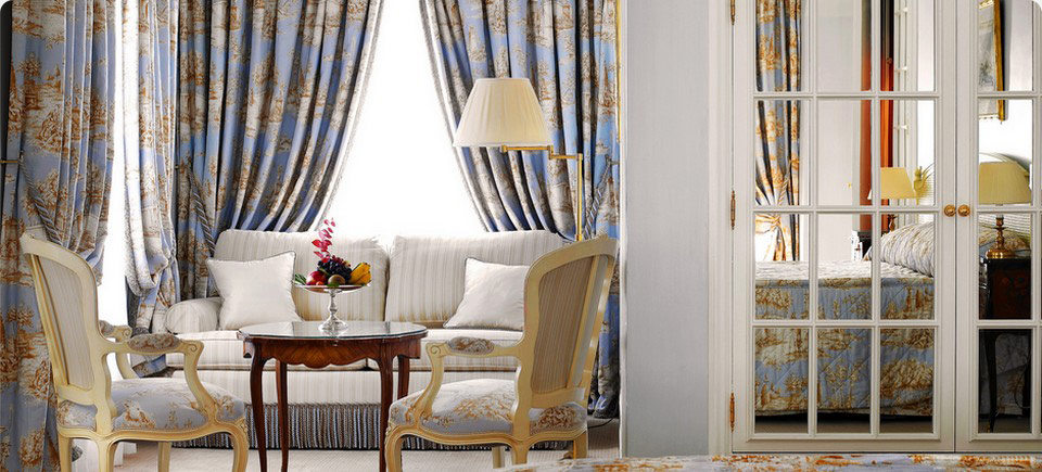 Здание отеля  по своему стилю оно напоминает прекрасный дворец XVIII века, декорированный в стиле французского классицизма. Пространство, свет, солнечные краски - это главная особенность всех номеров отеля. Ткани в декоре номера играют важную и многогранную роль. Шелк, бархат, велюр- только лучшие эксклюзивные ткани используются в декорире отеля. Подбор ткани для штор, покрывал, обивки кресел и диванов осуществляется с учетом того, что рисунок не должен повторяться ни в одной из комнат отеля.
