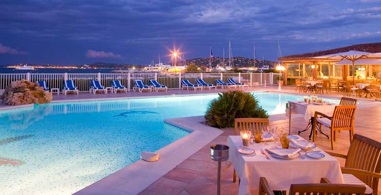 Инфраструктура отеля: На территории отеля работает гастрономический ресторан "L'Amphitrite", сервирующий изысканные блюда из морепродуктов и другие деликатесы средиземноморской кухни. В хорошую погоду гости обслуживаются на цветущей террасе у бассейна. Гости могут приятно отдохнуть в баре с восхитительным видом на море, где в летний сезон проводятся вечерние развлекательные мероприятия. В распоряжение туристов, путешествующих по делам бизнеса, предоставлен полностью оборудованный конферец-зал "Francois Spoerry" площадью 81 кв.м., вмещающий до 70 человек.