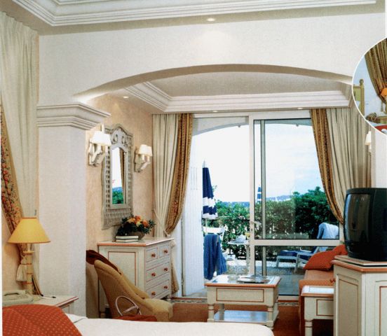 В отеле: Для размещения гостей предназначено 49 комфортабельных номеров, элегантно меблированных и оформленных в прованском стиле. В большей части номеров имеются балконы и террасы с захватывающим видом на море, Сен-Тропе или лагуну. Типы номеров: Marina View Room - номера с видом на лагуну, Sea View Room - номера с видом на море, De Luxe Room - номера большего размера, Junior Suite - просторные номера с гостиным уголком, Suite - роскошные номера, состоящие из спальни и гостиной.