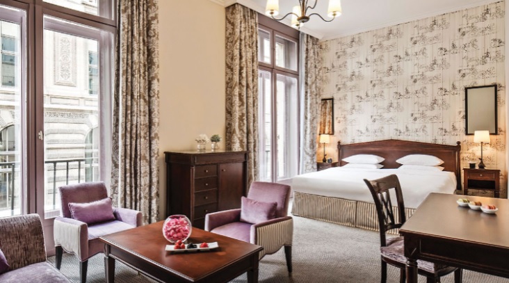 - Executive (30-40 кв.м., вид на парижские пейзажи или в тихий внутренний двор, большая гостиная зона, с диваном и креслами, рабочим уголком)
