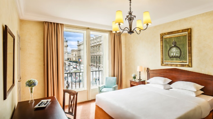 - View room (15-25 кв.м., захватывающий вид на парижские достопримечательности, номера в теплой цветовой гамме, роскошные ткани и темное дерево)
