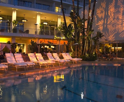 Отель расположен в районе Беверли-Хиллз, на пересечении бульваров Wilshire и Santa Monica.