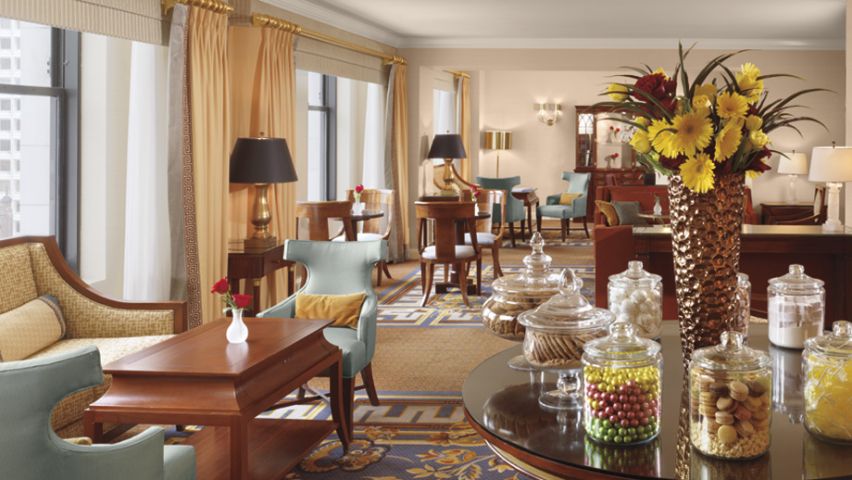 В номере:  ванная комната, отделанная итальянским мрамором с двойной раковиной и отдельным туалетом, эксклюзивные туалетные принадлежности от Asprey Purple Water, фен, косметическое зеркало, халаты, тапочки, роскошное постельное белье Frette, часы с будильником, утюг и гладильная доска, TV панель, кабельное телевидение с возможностью выбора фильмов «pay-per-view», DVD/CD-проигрыватели, док-станция для iPod, кофеварка, чай/кофе, бар с холодильником, сейф, вмещающий ноутбук, телефон с двумя линиями и голосовой почтой, рабочий стол со встроенной электрической розеткой и широкополосной сетью для настольных компьютеров, проводной/Wi-Fi доступ в интернет за дополнительную плату.